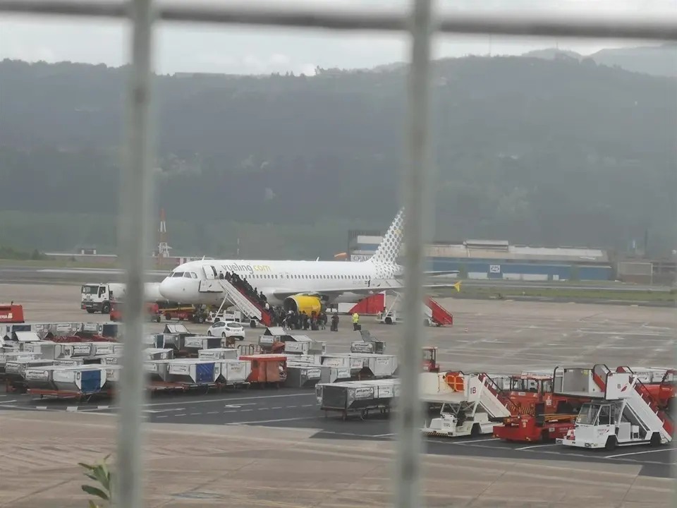En el Seve Ballesteros, se ha cancelado, por ejemplo, el vuelo con llegada a las 21.35 horas procedente de Londres Stansted y la salida de las 22.00 desde la capital cántabra hacia el mismo.