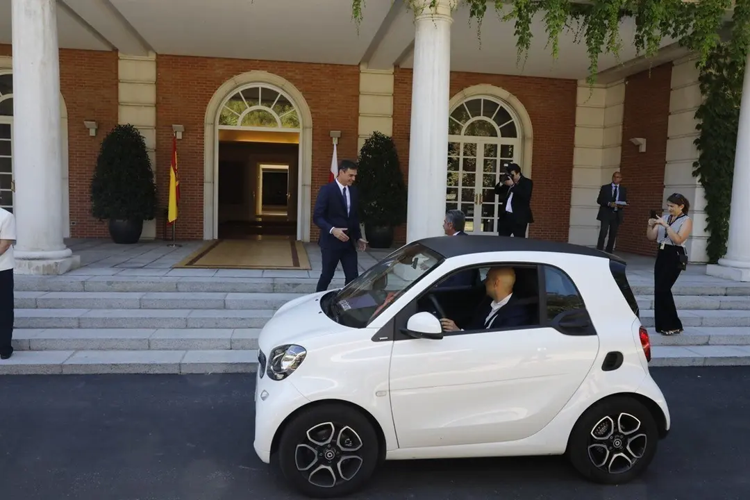 Sin embargo en esta ocasión, dada la huelga convocada por el sector del taxi, Revilla decidió adelantar un día su llegada a la capital, haciendo noche en Madrid, y ha recurrido a un amigo para llegar hasta La Moncloa. Este improvisado 'chófer' le ha llevado hasta la puerta principal del complejo presidencial en un pequeño coche eléctrico.