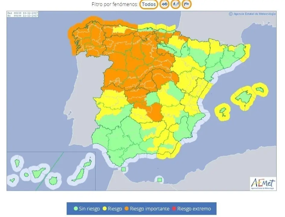 Se trata de una borrasca "muy profunda" que pasará durante todo el domingo por la península y finalizará el lunes, y que provocará precipitaciones que podrían superar los 80-100 litros por metro cuadrado, especialmente en el cuadrante noroeste de la Península y en zonas montañosas.