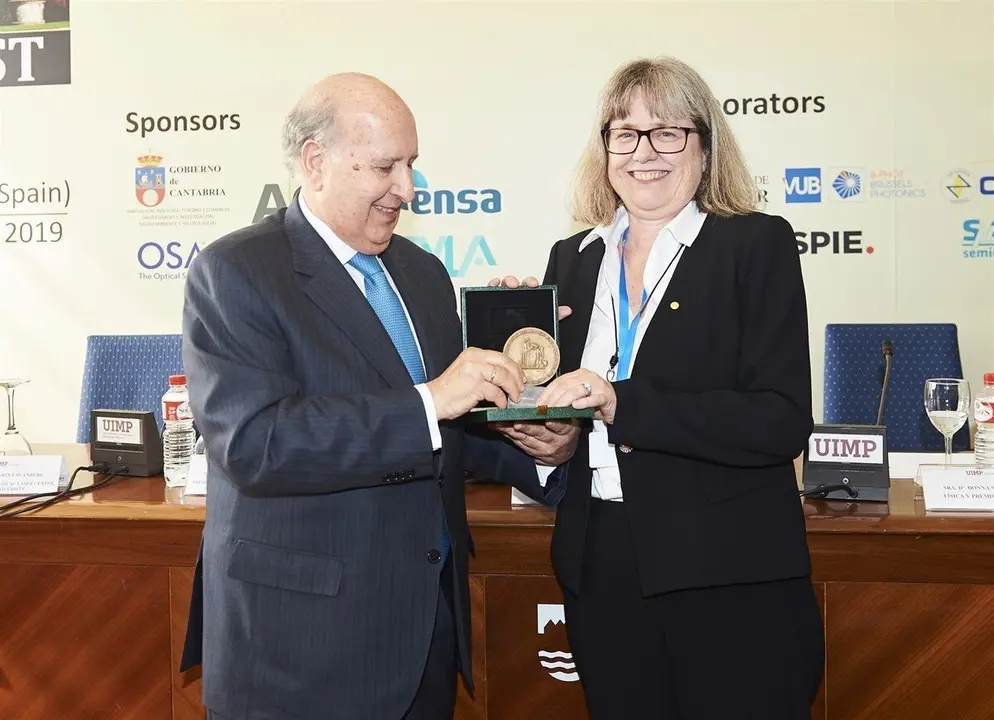 La entrega del galardón ha tenido lugar en la Universidad Internacional Menéndez Pelayo (UIMP), en el marco de los Cursos de Verano, donde Donna Strickland participa esta semana en el curso 'IV International School on Light Sciences and Technologies. Light in Sources, Health and Medicine'. Además, la UIMP la investirá Doctor Honoris Causa el próximo jueves, día 20.