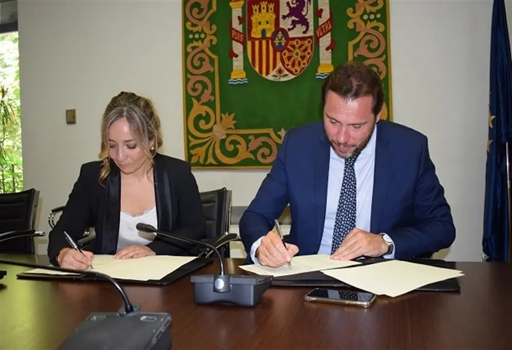 La vicepresidenta de la Plataforma Aire Limpio y directora del Área Industrial y Medio Ambiente de la asociación de fabricantes, Arancha García, y el alcalde de Valladolid y presidente de la RedEspañola de Ciudades Saludables, Óscar Puente, han sellado el acuerdo.