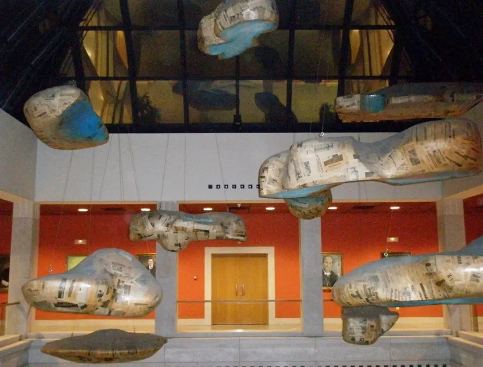 En exhibición permanente cuenta con el conjunto de murales 'Ama la Paz y Odia la Guerra' realizado por Luis Quintanilla y que está declarado Bien de Interés Cultural, una de las secciones de la Colección Museográfica de la UC, así como la instalación escultórica de Agustín Ibarrola 'Nubes de papel' o la galería de retratos de los rectores de la institución.