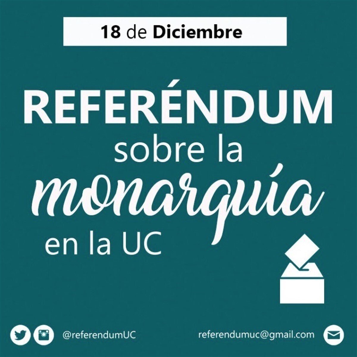 Estudiantes de 26 universidades españolas organizarán desde este próximo jueves hasta el mes de febrero referéndums en sus facultades para "cuestionar a una institución anacrónica y antidemocrática como es la monarquía", según han anunciado este martes en una rueda de prensa en Madrid. La Universidad de Cantabria (UC) lo celebrará el próximo 18 de diciembre.