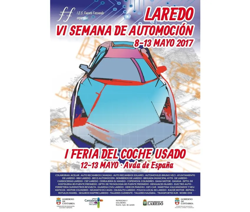 El Ayuntamiento de Laredo patrocina y colabora con esta iniciativa y también el Gobierno de Cantabria a través de las consejerías de Educación, Cultura y Deporte; y la de Innovación, Industria, Turismo y Comercio. Los objetivos que marcan la programación de estas jornadas son educativos, de innovación, de aprendizaje y de inserción laboral y, para ello, se ha elaborado un amplio programa de actividades. De lunes a viernes, en el IES Fuente Fresnedo habrá conferencias y charlas-coloquio a cargo de especialistas de las empresas colaboradoras del sector de la automoción que se desarrollarán en jornadas de mañana y tarde. Hasta el jueves el instituto también acogerá una exposición de las últimas novedades de los concesionarios colaboradores. Se instalará una PreITV y taller de reparación de lunas en horario de 10.30 a 13.30 y de 17.30 a 19.30 horas. El viernes, 12 de mayo, a las 17.30 horas, en la avenida de España, se abrirá la feria del coche usado que contará con una serie de actividades abiertas al público de 11.00 a 20.00 horas. Así, habrá hinchables para los más pequeños, un taller de gastronomía impartido por profesores y alumnos de Hostelería, un simulacro realizado por los bomberos de Laredo en el aparcamiento detrás de la sede de los juzgados, una exposición de vehículos especiales, una demostración de neumáticos, y una demostración práctica de robótica. El lado solidario de esta I Feria del Coche Usado viene marcado por la colaboración con la Asociación de Padres de Niños con Cáncer de Cantabria (AMARA) que trabaja para ayudar a los niños con cáncer y a sus familias, para lo cual se cobrará un euros a las personas que acudan a visitar la Feria y, todo lo recaudado será destinado a esta causa solidaria.
