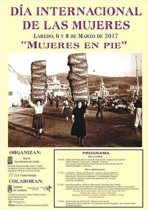 El Ayuntamiento de Laredo y el Instituto de Enseñanza Secundaria Fuente Fresnedo de la villa han organizado un programa de actos para conmemorar el Día Internacional de la Mujer Trabajadora, entre los que destaca la I Carrera-Paseo de Mujeres del municipio, una exposición fotográfica, un homenaje o la proyección de una película. En los actos programados han contado con la colaboración de la Consejería de Innovación, Industria, Turismo y Comercio del Gobierno de Cantabria, la Policía Local, el Archivo Municipal, la Casa de Cultura Doctor Velasco, y la Asociación de Empresarios de Laredo (ACELAR), informa el Consistorio. Destaca la organización de la I Carrera-Paseo de Mujeres bajo el lema 'Juntas hacia delante', que se celebrará este miércoles, 8 de marzo, de 11.30 a 12.30 horas. El punto de salida será el túnel de la Atalaya, y la marcha continuará por la calle Menéndez Pelayo y Avenida de España hasta la sede del Ayuntamiento laredano, donde tres mujeres leerán un manifiesto. Para participar en esta carrera-paseo se recomienda llevar atuendo de color blanco, negro o blanco y negro. Otra actividad es la exposición fotográfica 'Mujeres y Oficios de Laredo', que se inaugurará a las 17.30 horas en el Área Expositiva de la Oficina de Información Turística. La muestra está compuesta por 38 imágenes sobre los oficios vinculados al mar y desempeñados por mujeres de Laredo: trabajadoras de las fábricas de conservas, adobadoras, revendedoras de pescado, etc. Se podrá ver hasta el 20 de marzo de 2017, y el horario de visita es de lunes a domingo de 9 a 14 horas y de 16 a 19 horas. Tras la inauguración de la muestra, en la misma sala se rendirá homenaje a la mujer trabajadora del municipio, encarnada en 18 laredanas que han desempeñado tareas vinculadas al mundo de la mar. La jornada finalizará con la proyección a las 19 horas en el cine de la Casa de Cultura Doctor Velasco de la película 'La estación de las mujeres', de Leena Yadav. Se trata de un film de la India que se estrenó en España en 2016, de 116 minutos de duración. La historia transcurre en un pequeño pueblo del estado de Gurajat, en la India actual, donde cuatro mujeres se atreven a oponerse a los hombres y a las tradiciones ancestrales que las esclavizan. Alentadas por su amistad y su deseo de libertad, se enfrentan a sus demonios y sueñan con el amor y otro mundo.
