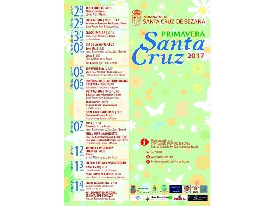 El Ayuntamiento de Santa Cruz de Bezana ha organizado un completo programa de actividades deportivas, lúdicas y culturales para las Fiestas de Primavera que arrancarán este miércoles, 3 de mayo, jornada festiva en el municipio con el Día de la Santa Cruz y la Fiesta del Mayor