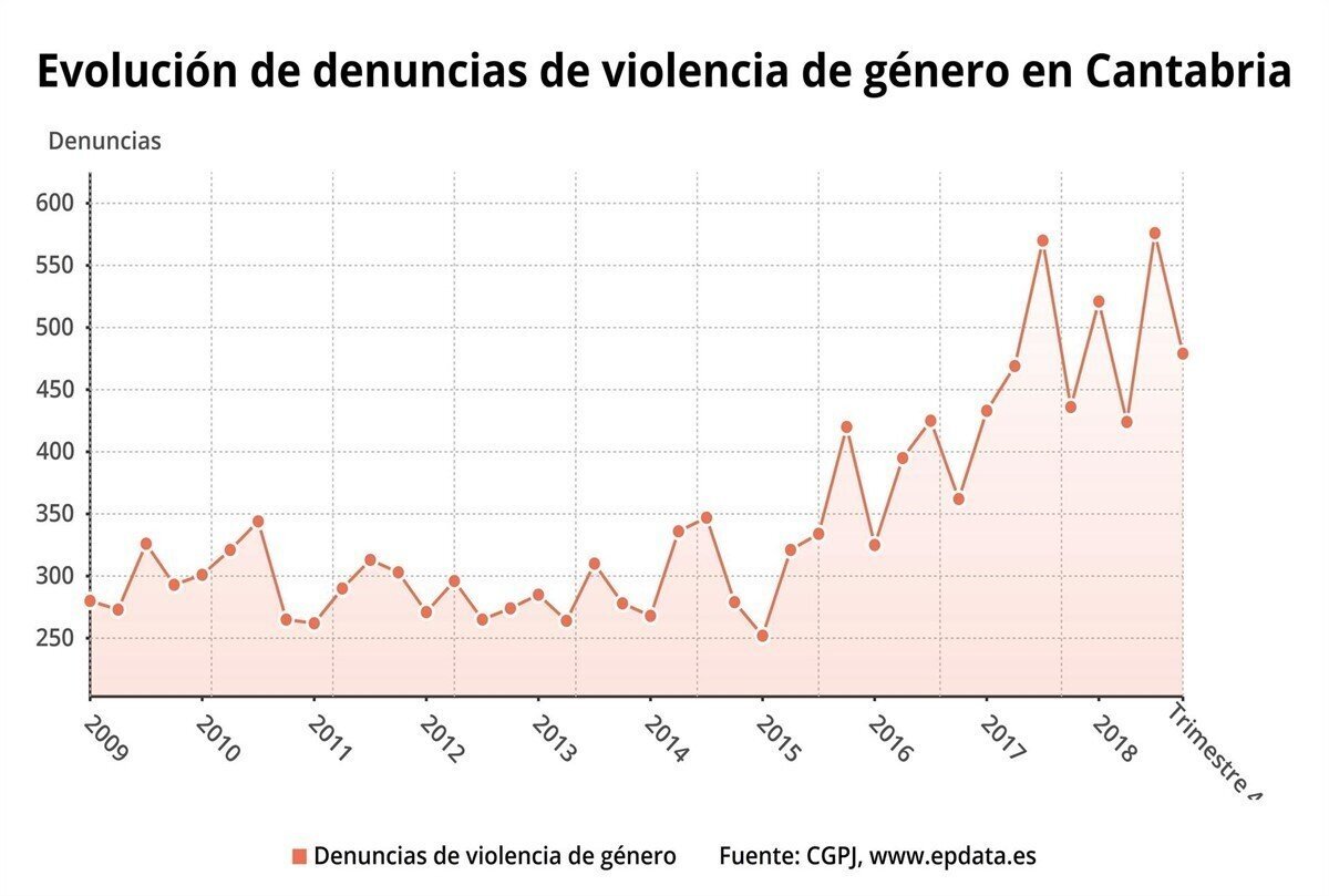 Los juzgados de Cantabria recibieron un total de 2.000 denuncias por violencia de género en 2018, lo que supone un 4,8% más que el ejercicio anterior, según la estadística anual que ha hecho pública este viernes el Observatorio contra la Violencia Doméstica y de Género.