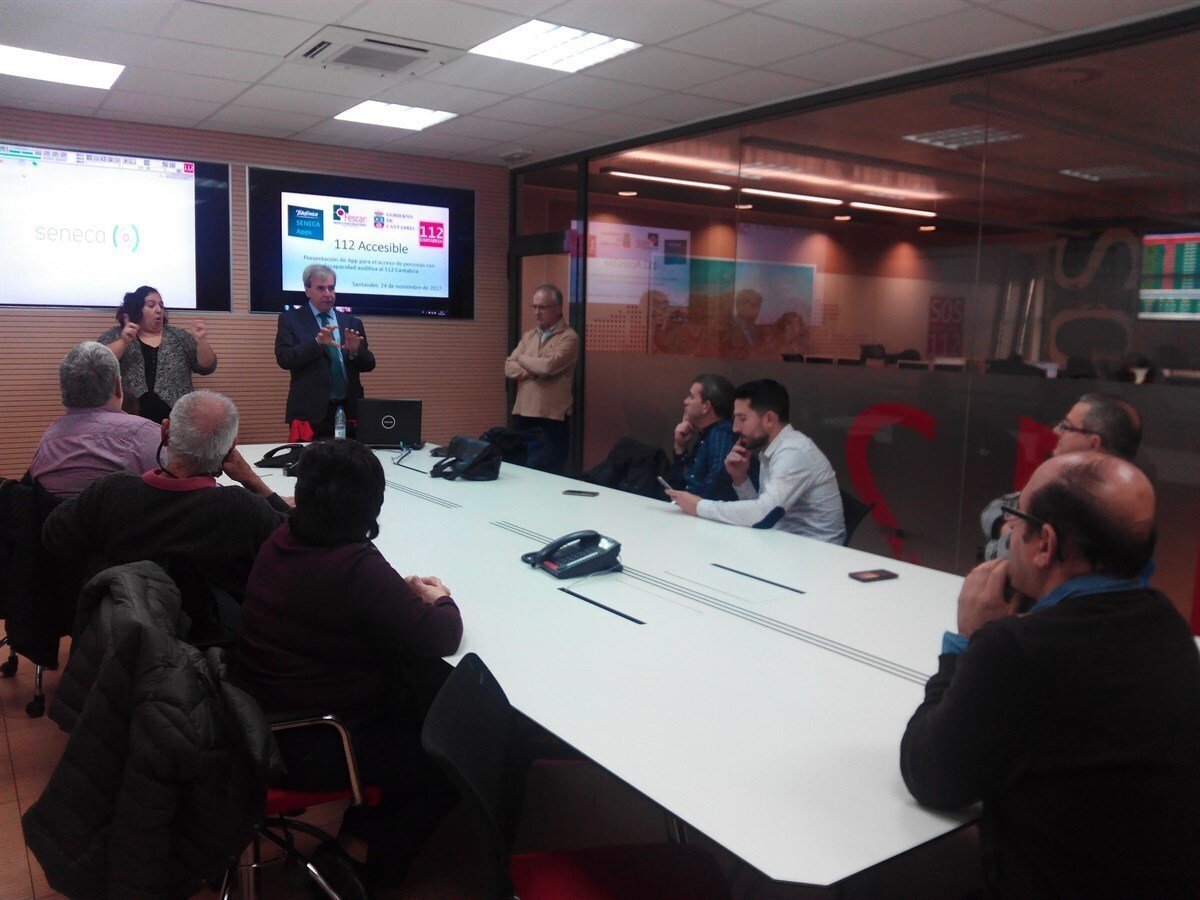 Las personas con discapacidad auditiva podrán comunicarse con el Servicio de Emergencias 112 de Cantabria a través de una nueva aplicación móvil, '112 Accesible', cuyo modelo piloto ha sido presentado a miembros de la Federación de Asociación de Personas Sordas de la Comunidad (FESCAN).