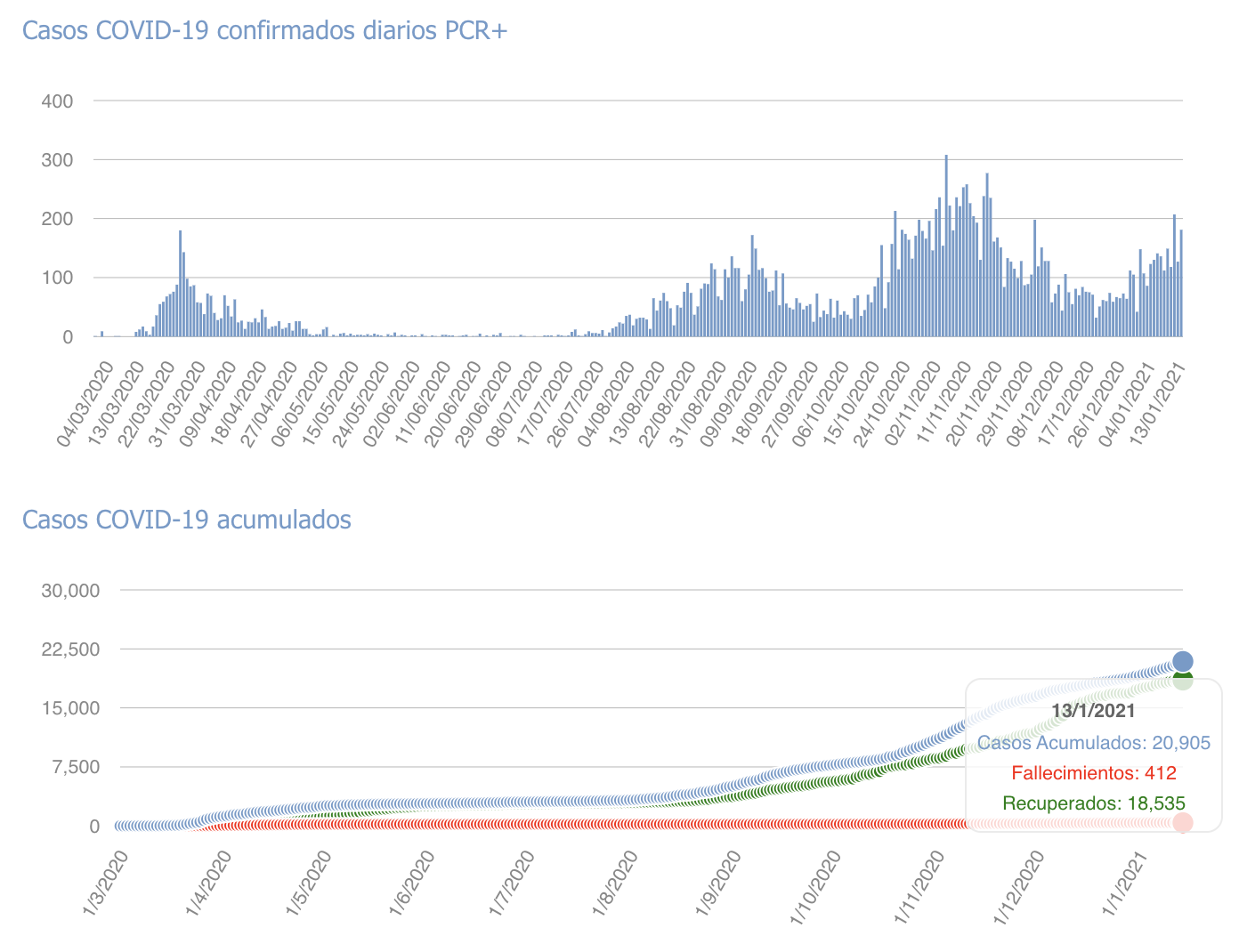 Os dejamos la tabla con los últimos datos facilitados por Sanidad, sumados los de ayer miércoles 13 de enero de 2021 hasta las 23:59h.