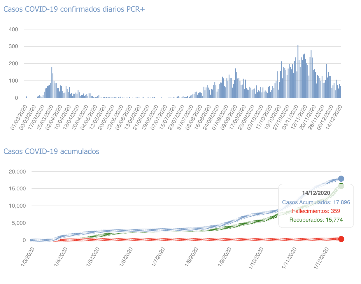 Os dejamos la tabla con los últimos datos facilitados por Sanidad, sumados los de ayer lunes 14 de diciembre de 2020 hasta las 23:59h.