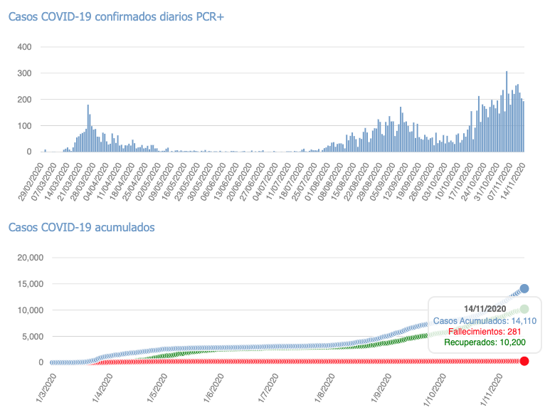 Os dejamos la tabla con los últimos datos facilitados por Sanidad, sumados los de ayer sábado 14 de noviembre de 2020 hasta las 23:59h.