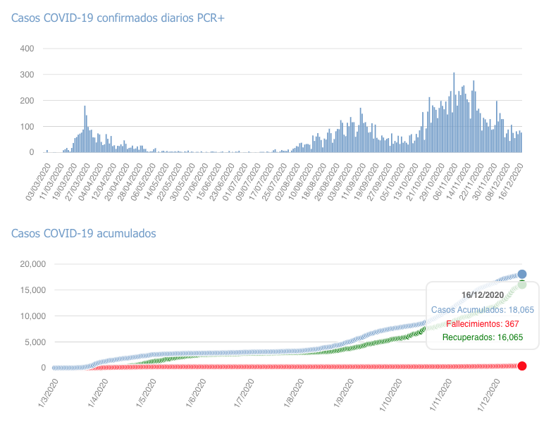 Os dejamos la tabla con los últimos datos facilitados por Sanidad, sumados los de ayer miércoles 16 de diciembre de 2020 hasta las 23:59h.