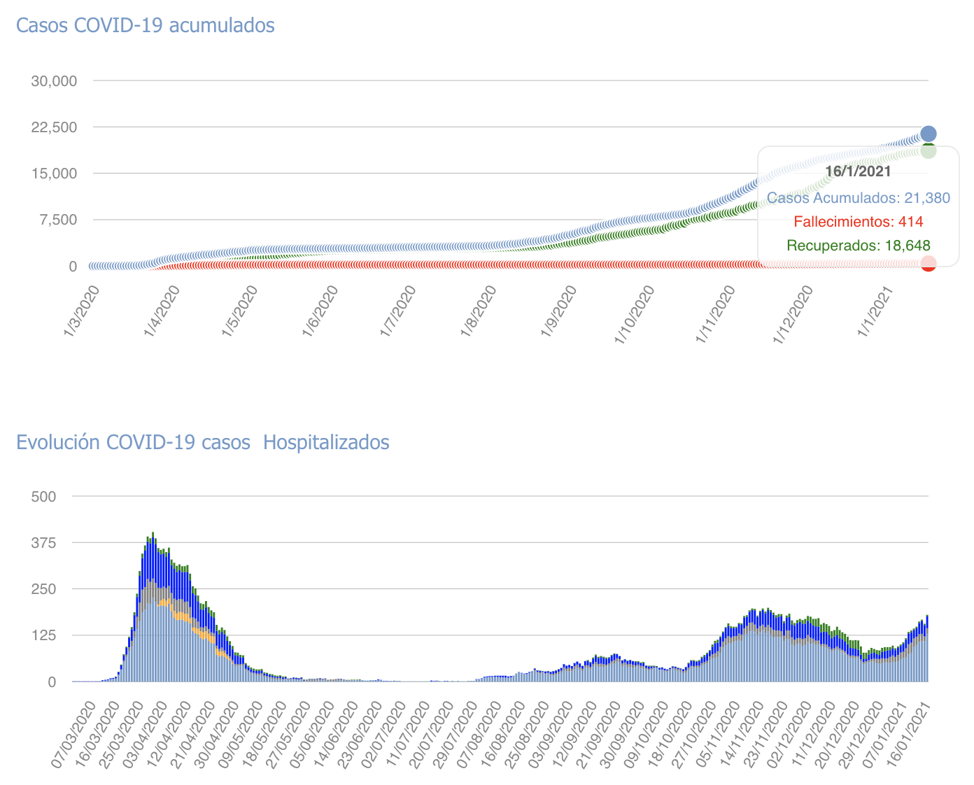 Os dejamos la tabla con los últimos datos facilitados por Sanidad, sumados los de ayer sábado 16 de enero de 2021 hasta las 23:59h.