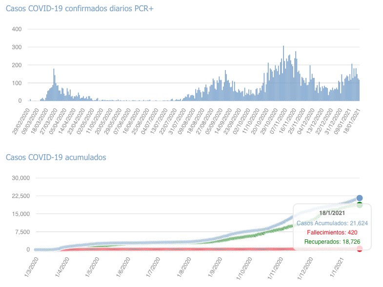 Os dejamos la tabla con los últimos datos facilitados por Sanidad, sumados los de ayer lunes 18 de enero de 2021 hasta las 23:59h.