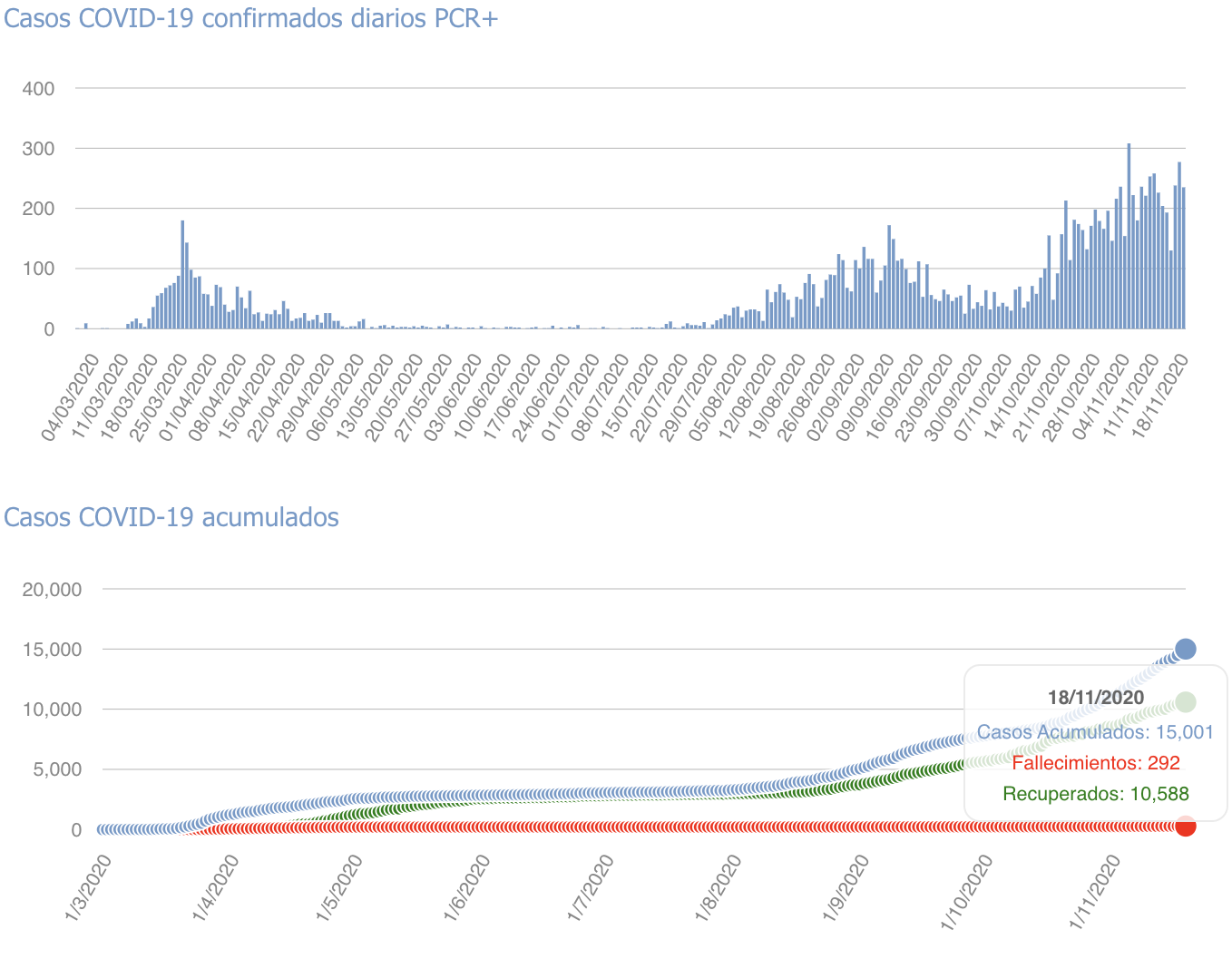 Os dejamos la tabla con los últimos datos facilitados por Sanidad, sumados los de ayer miércoles 18 de noviembre de 2020 hasta las 23:59h.