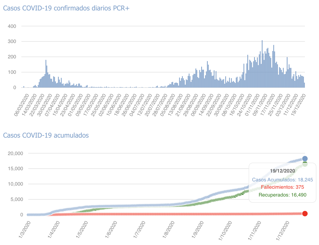 Os dejamos la tabla con los últimos datos facilitados por Sanidad, sumados los de ayer sábado 19 de diciembre de 2020 hasta las 23:59h.