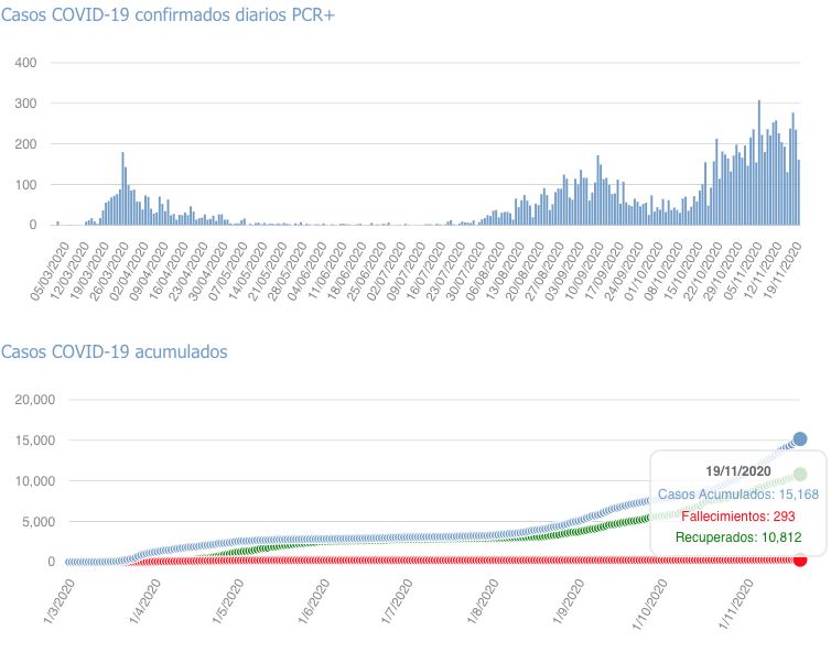 Listado de casos de coronavirus por municipios | Datos 20 Nov
