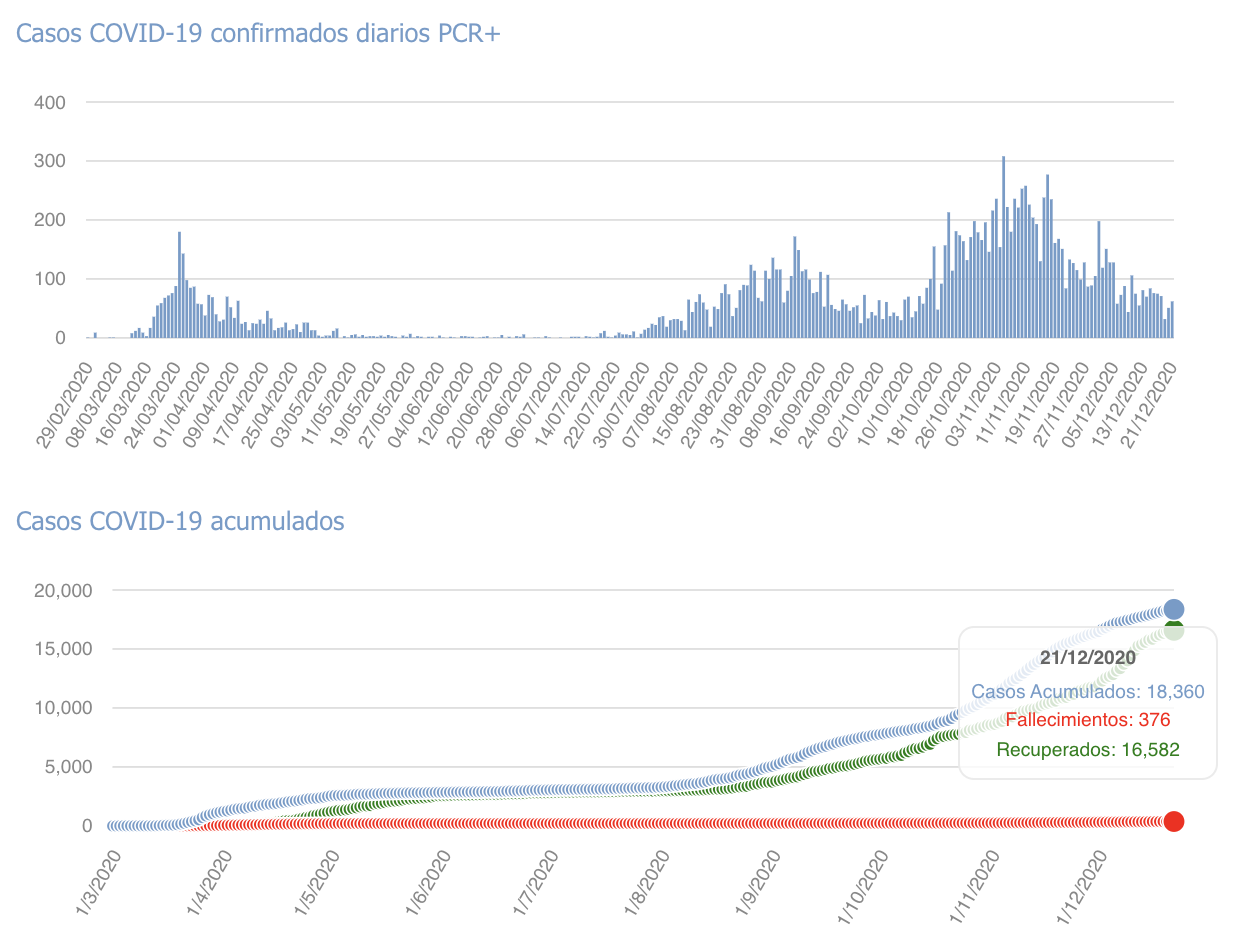 Os dejamos la tabla con los últimos datos facilitados por Sanidad, sumados los de ayer lunes 21 de diciembre de 2020 hasta las 23:59h.