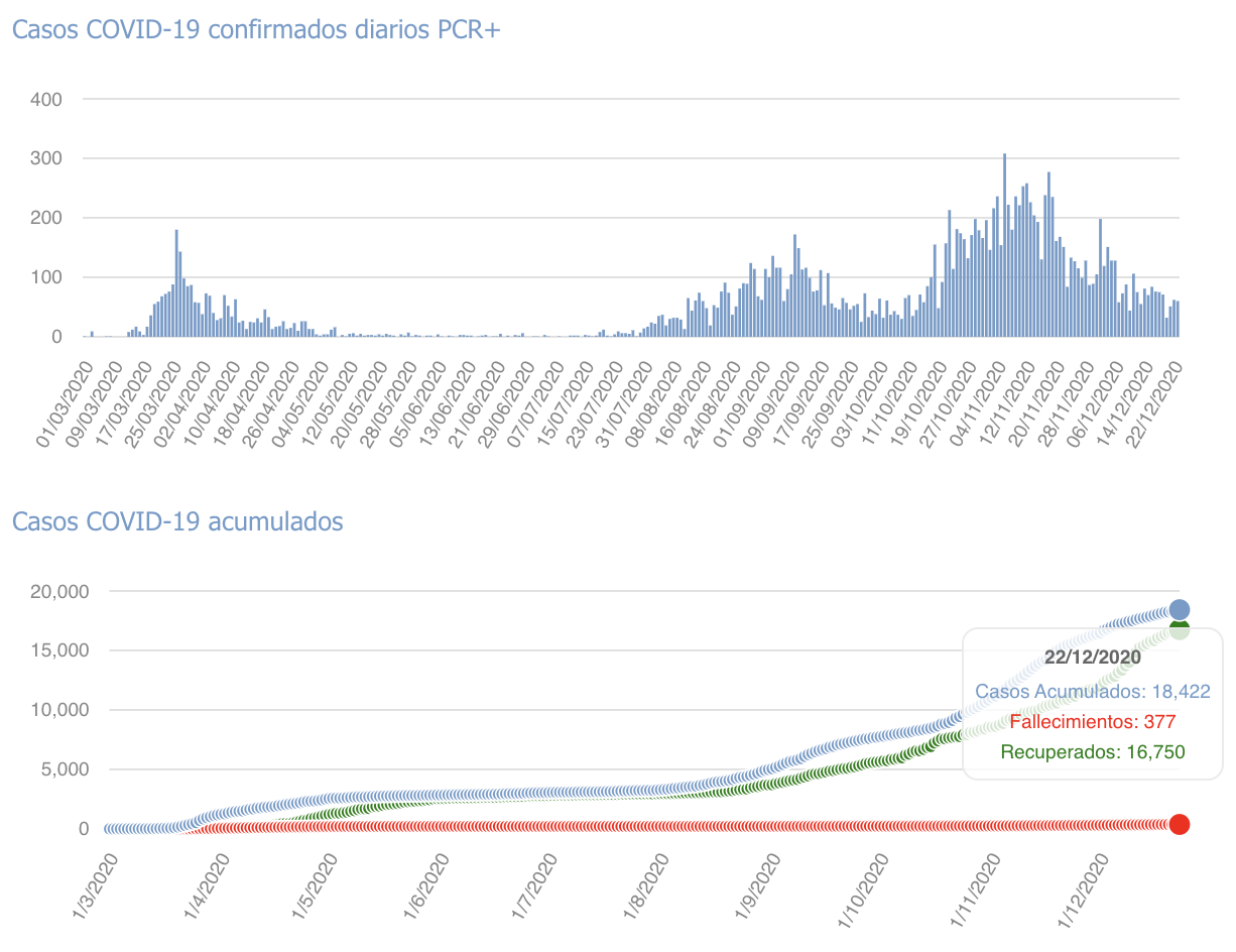Os dejamos la tabla con los últimos datos facilitados por Sanidad, sumados los de ayer martes 22 de diciembre de 2020 hasta las 23:59h.