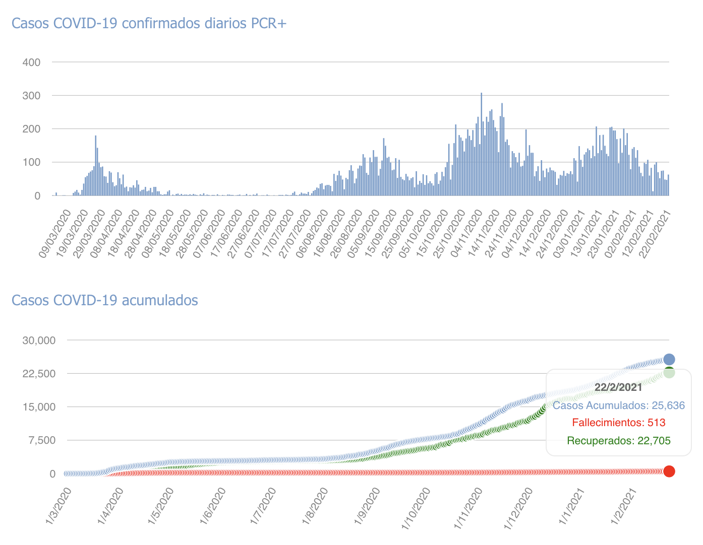 Os dejamos la tabla con los últimos datos facilitados por Sanidad, sumados los de ayer lunes 22 de febrero de 2021 hasta las 23:59h.