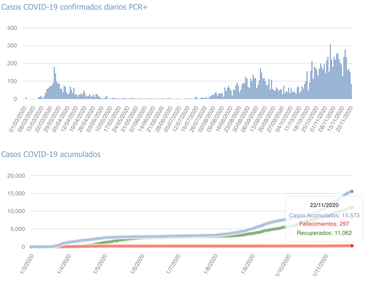 Os dejamos la tabla con los últimos datos facilitados por Sanidad, sumados los de ayer domingo 22 de noviembre de 2020 hasta las 23:59h.
