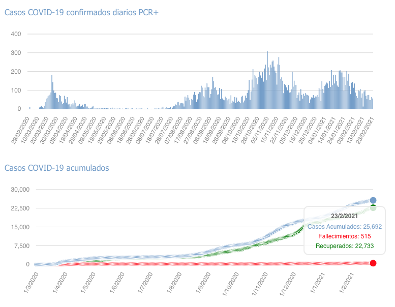 Os dejamos la tabla con los últimos datos facilitados por Sanidad, sumados los de ayer martes 23 de febrero de 2021 hasta las 23:59h.