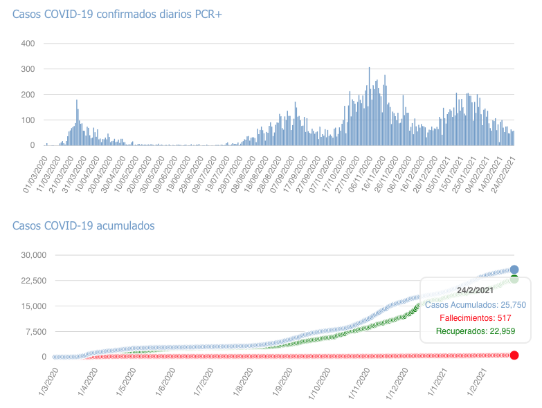 Os dejamos la tabla con los últimos datos facilitados por Sanidad, sumados los de ayer miércoles 24 de febrero de 2021 hasta las 23:59h.