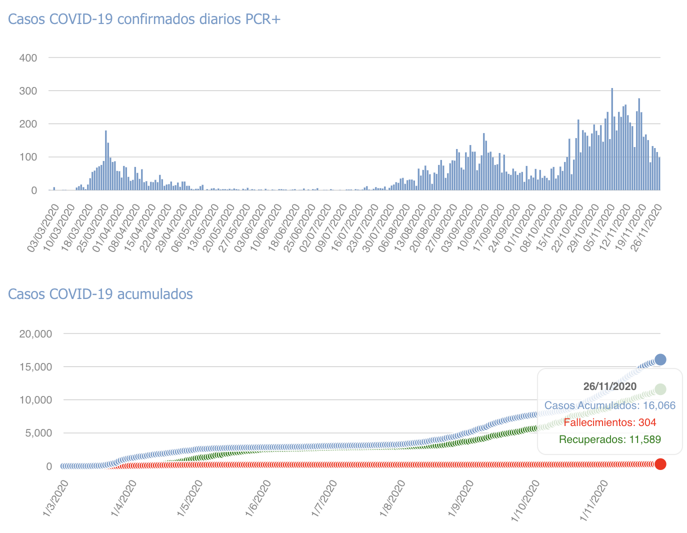 Os dejamos la tabla con los últimos datos facilitados por Sanidad, sumados los de ayer jueves 26 de noviembre de 2020 hasta las 23:59h.