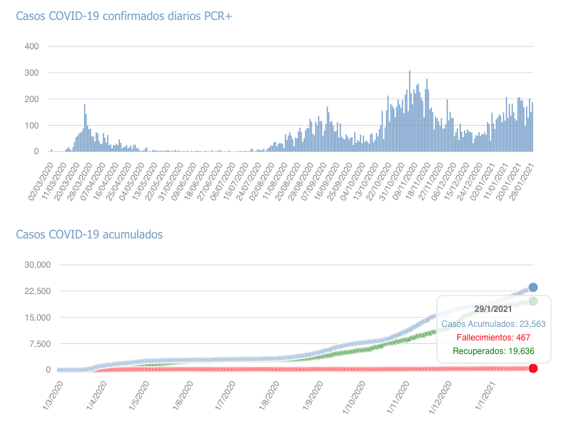 Os dejamos la tabla con los últimos datos facilitados por Sanidad, sumados los de ayer viernes 29 de enero de 2021 hasta las 23:59h.