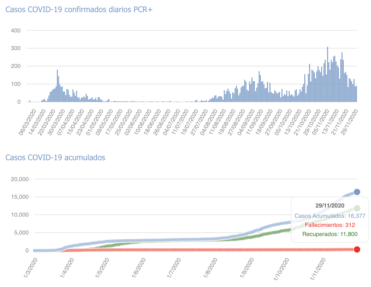Os dejamos la tabla con los últimos datos facilitados por Sanidad, sumados los de ayer domingo 29 de noviembre de 2020 hasta las 23:59h.