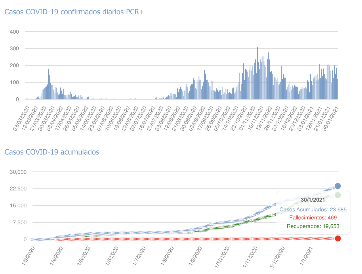 Os dejamos la tabla con los últimos datos facilitados por Sanidad, sumados los de ayer sábado 31 de enero de 2021 hasta las 23:59h.