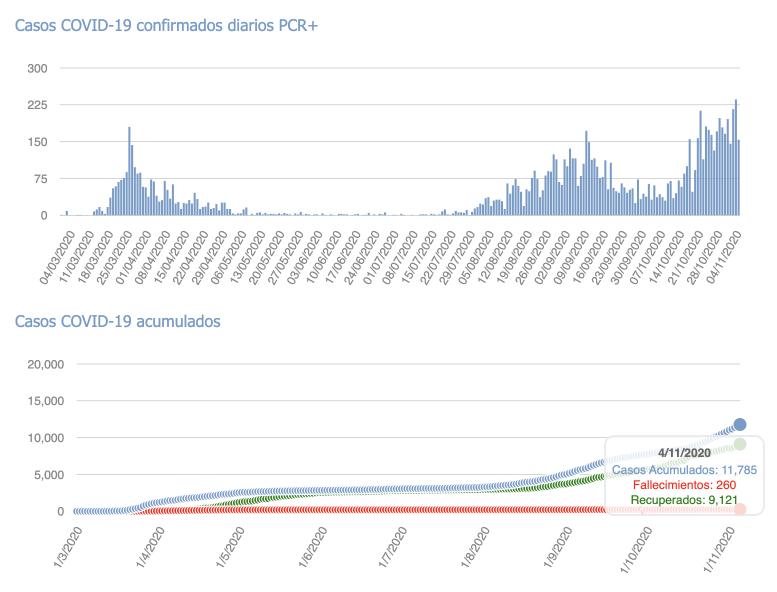 Os dejamos la tabla con los últimos datos facilitados por Sanidad, sumados los de ayer día 4 de noviembre de 2020 hasta las 23:59h.