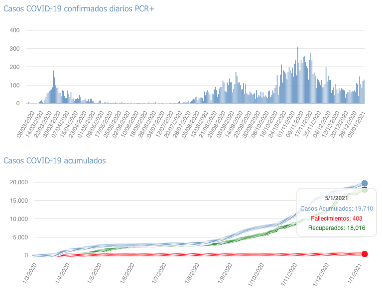 Os dejamos la tabla con los últimos datos facilitados por Sanidad, sumados los de ayer martes 5 de enero de 2021 hasta las 23:59h.