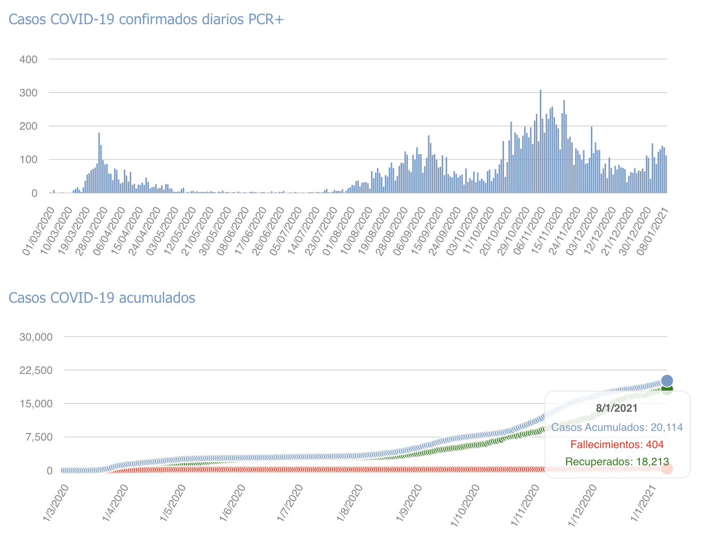 Os dejamos la tabla con los últimos datos facilitados por Sanidad, sumados los de ayer viernes 8 de enero de 2021 hasta las 23:59h.