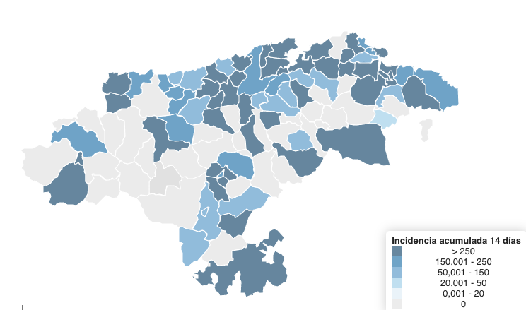 Cantabria comienza la primera semana tras la Navidad con una incidencia media de 311 casos por cada 100.000 habitantes, os dejamos el listado completo de municipios y su incidencia acumulada en los primeros 14 días de 2021.