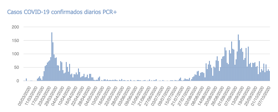 Os dejamos la tabla con los últimos datos facilitados por Sanidad, sumados los de ayer día 7 de octubre de 2020 hasta las 23:59h.