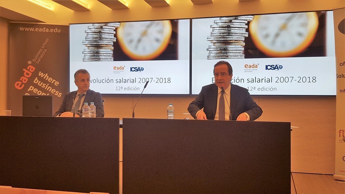 Así se extrae del informe 'Evolución salarial 2007-2018', que se ha elaborado con los datos salariales de más de 80.000 trabajadores por cuenta ajena en España y que han presentado este jueves en rueda de prensa el presidente de Icsa Grupo, Ernest Poveda, y el profesor de Eada Business School Jordi Costa.