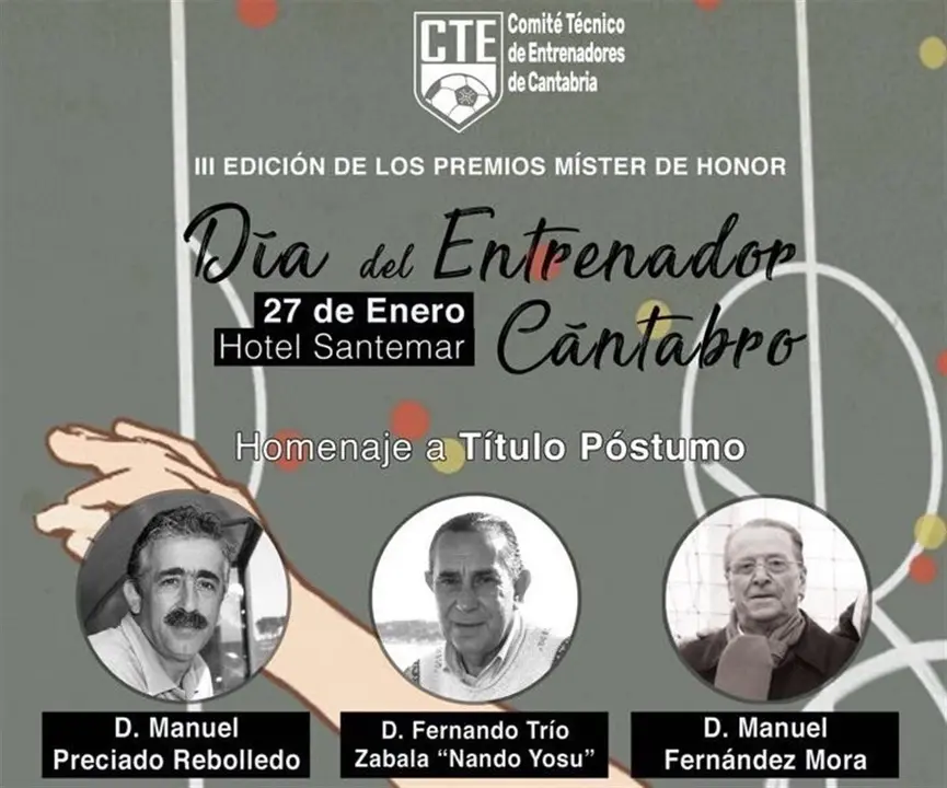 El Comité Técnico de Entrenadores celebrará este sábado, 27 de enero, la tercera edición del Día del Entrenador, en la que se homenajeará a título póstumo a Nando Yosu, Manuel Fernández Mora y Manolo Preciado, tres de los mejores entrenadores de la historia del fútbol cántabro.