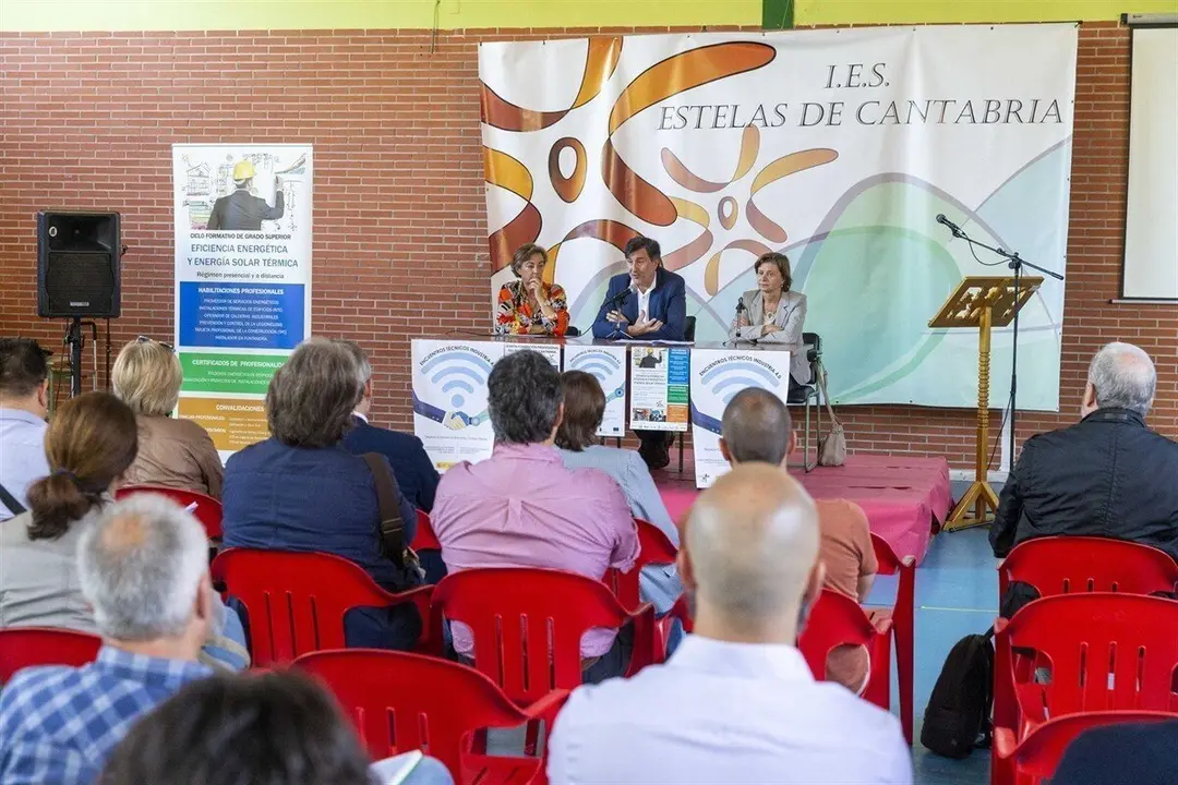 En el acto inaugural, Fernández Mañanes ha estado acompañado por la directora del IES Estelas de Cantabria, Paz Sasián, y la directora de Formación Profesional y Educación Permanente, María Jesús Reimat. La jornada abordará aspectos como el ahorro de consumo en los nuevos edificios, la aerotermia como energía renovable del futuro, la iluminación eficiente y la energía solar fotovoltáica. Para finalizar se impartirá una masterclass de Big Data.