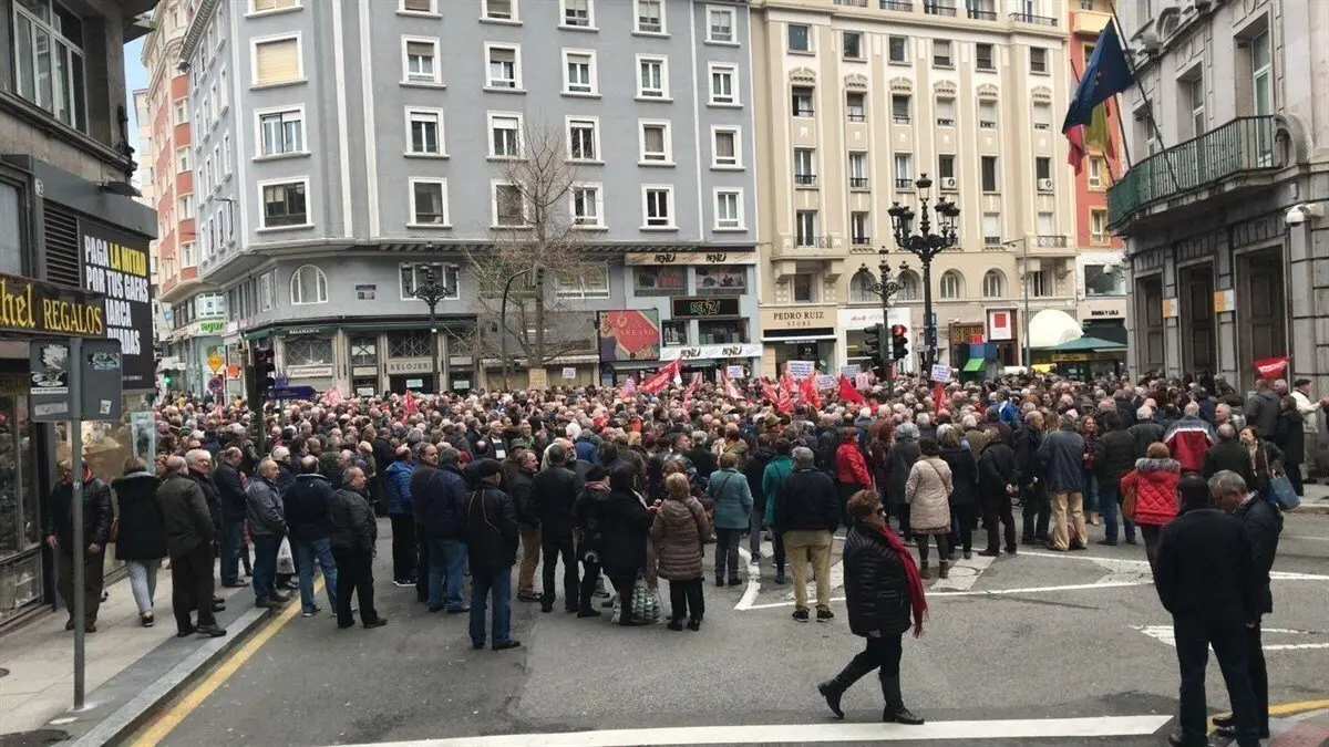 Más de un millar de personas, según los sindicatos, ha secundado este jueves la concentración de protesta convocada por las federaciones de jubilados y pensionistas de UGT y CCOO en Cantabria ante la sede de la Seguridad Social de Santander en defensa de "unas pensiones públicas dignas".