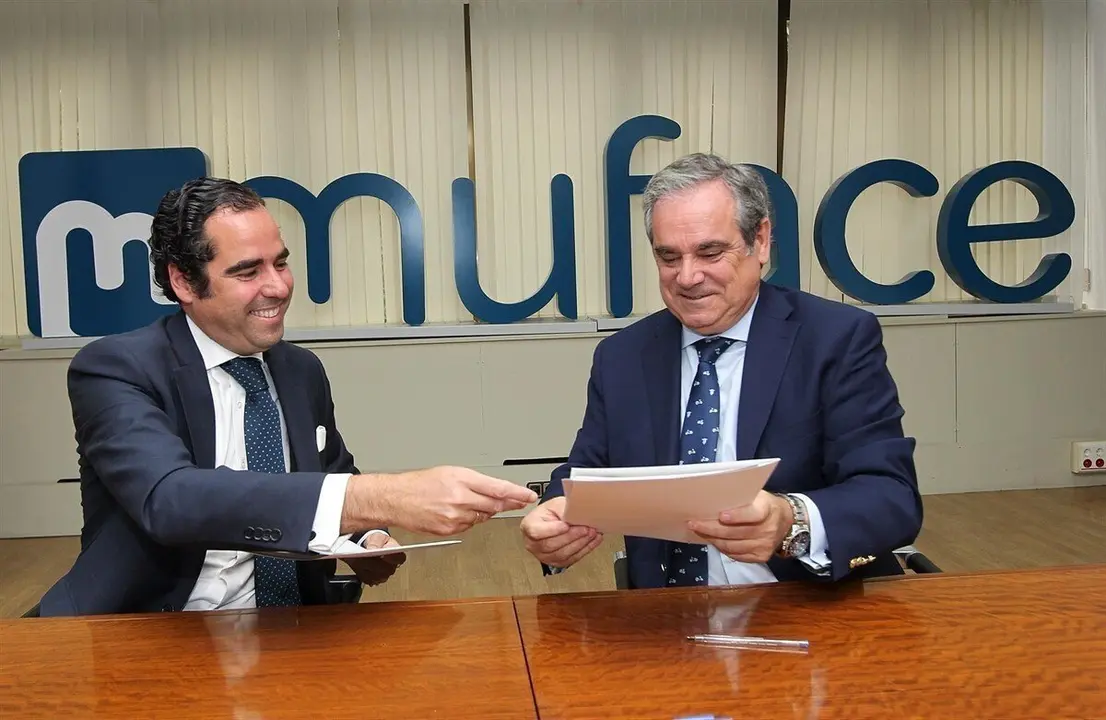 El acto de la firma de esta adaptación ha contado con la presencia del director general de MUFACE, Antonio Sánchez, y el presidente del CGCOF, Jesús Aguilar, así como con la secretaria general del Consejo General de Colegios Farmacéuticos y con presidentes miembros del Grupo de Trabajo con las mutualidades de la Organización Farmacéutica Colegial.