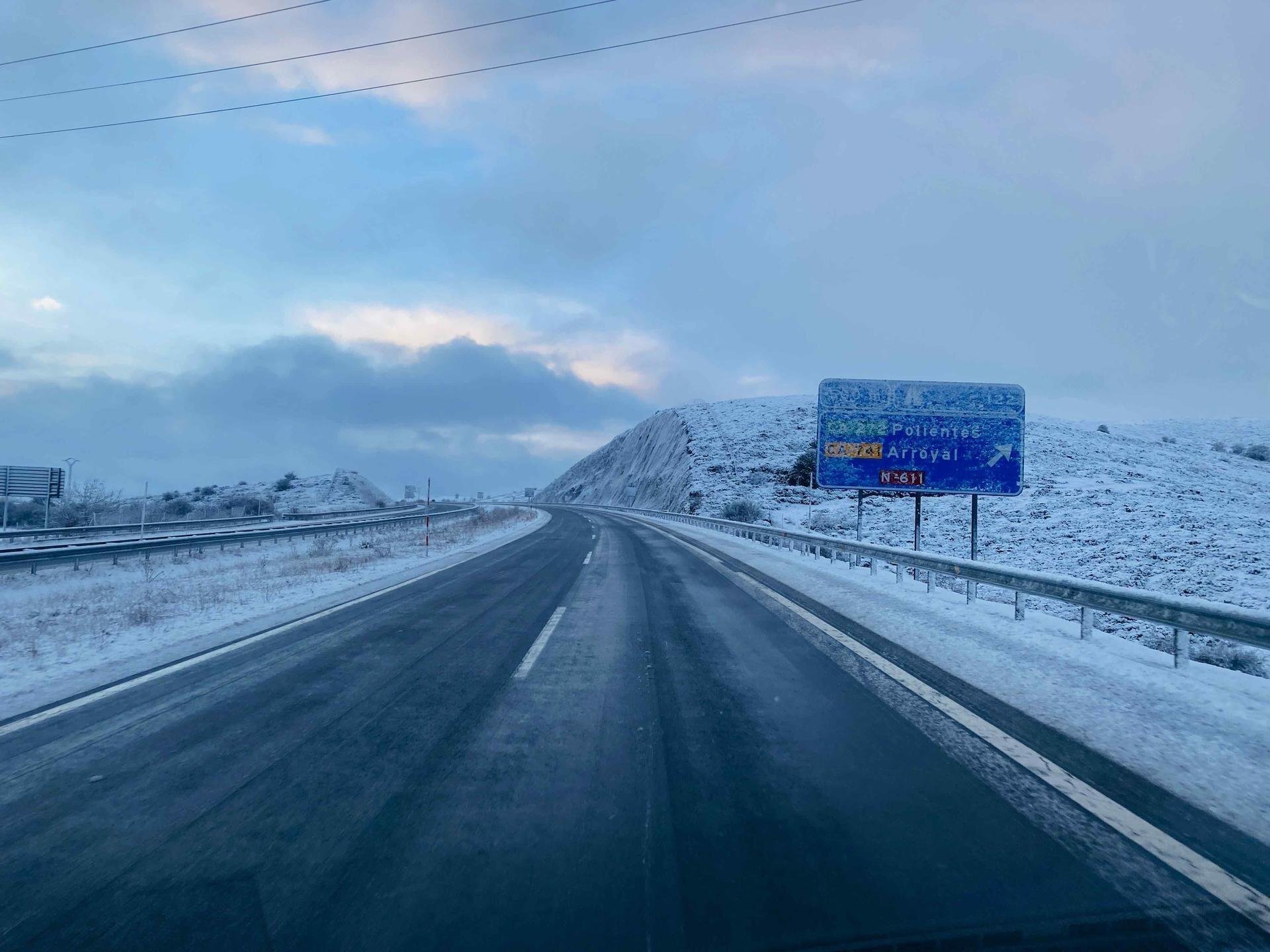 La nieve obliga extremar la precaución en Pozazal y cadenas en los puertos de la red secundaria