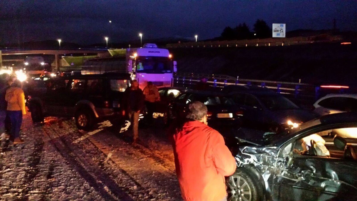 Nueve personas han resultado heridas de carácter leve en un accidente en el que se han visto implicados catorce coches y un camión. La colisión múltiple ha tenido lugar en el punto kilométrico 210 de la A8 entre Solares y Torrelavega, en sentido a esta última localidad, a la altura de Sarón.