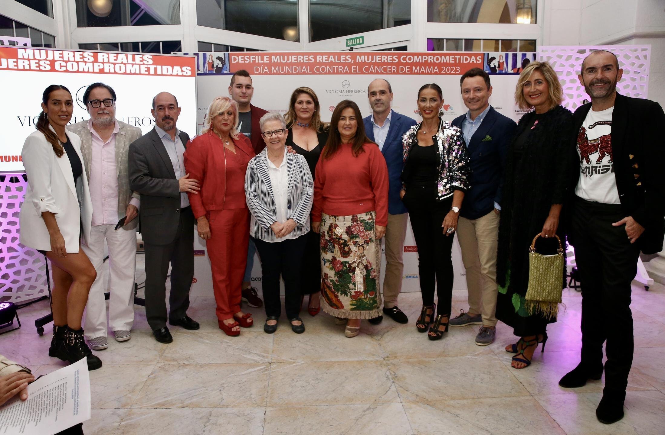 Así, representantes de distintos sectores profesionales desfilaron con los diseños de las firmas de moda Victoria Herreros, Maribel Pradera y 'Cyrana', una iniciativa solidaria de la Asociación de Creadores de Cantabria y APEMECAC para concienciar socialmente en la prevención del cáncer de mama, que reunió a conocidos rostros de la política, la empresa, la cultura y la sociedad cántabra.