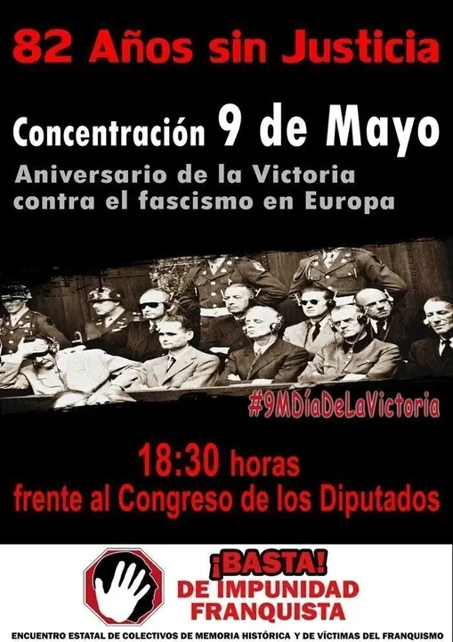Al mismo tiempo, en Madrid se concentrarán ante el Congreso de los Diputados los colectivos de Memoria Histórica en demanda de justicia, en esa jornada en que se conmemora el aniversario de la victoria contra el fascismo en Europa.