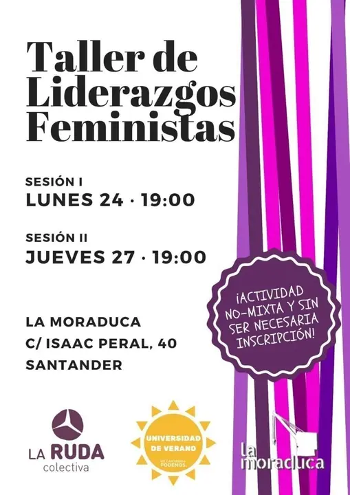 Los talleres, con una duración estimada de dos horas, serán impartidos por La Ruda Colectiva, organización cántabra de mujeres que centra su ámbito de actuación en temáticas feministas, sexuales, culturales... Se caracterizan por hacer actividades dinámicas y participativas preparadas para todo tipo de públicos.
