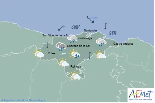 La Agencia Estatal de Meteorología (AEMET) prevé en Cantabria para este domingo día 9, nuboso con lluvias débiles y viento flojo del norte.