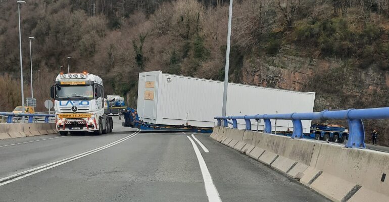 Primer incidente tras el corte de la A-67 en dirección Santander: un camión especial bloquea el tráfico en Pesquera