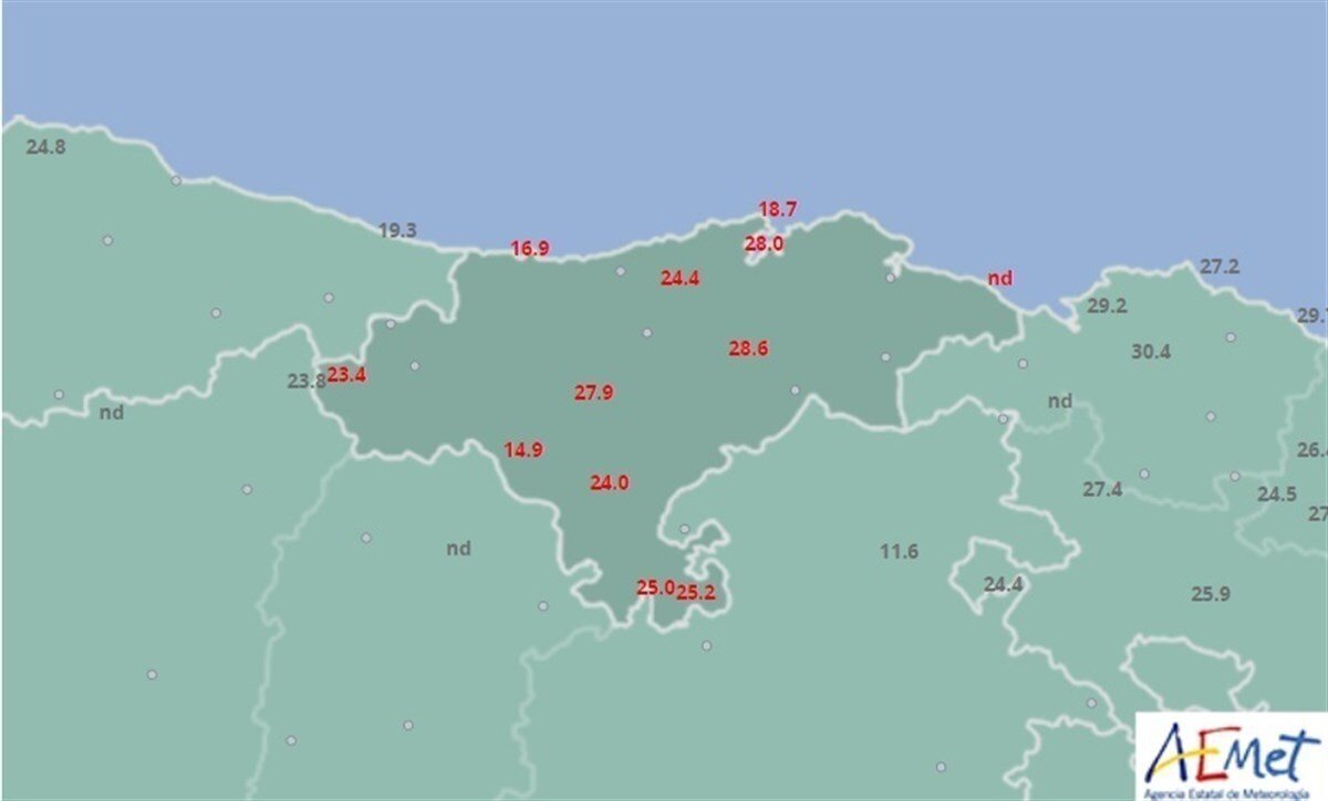 Por otra parte, los 30ºC registrados a las 14.50 horas, en la localidad de Tama (Cillorigo de Liébana) han sido la sexta temperatura más alta.