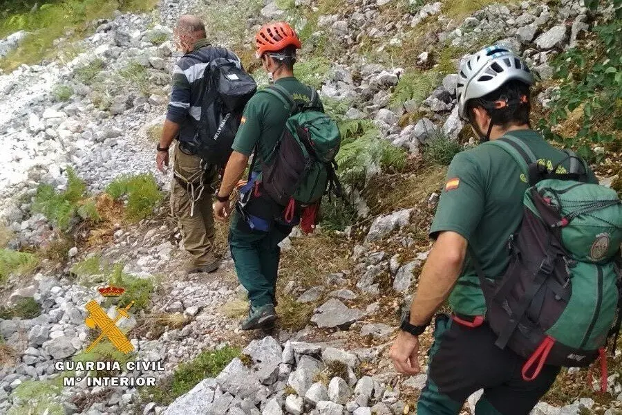 El hombre, que no presentaba lesiones, tuvo que ser descolgado de la pared con ayuda de cuerdas y mediante técnicas de socorro en pared vertical, descendiéndolo hasta donde se situaba el agente por la canal y, una vez allí, se le bajó caminando hasta la localidad de la Hermida, para seguidamente trasladarle a su vehículo.